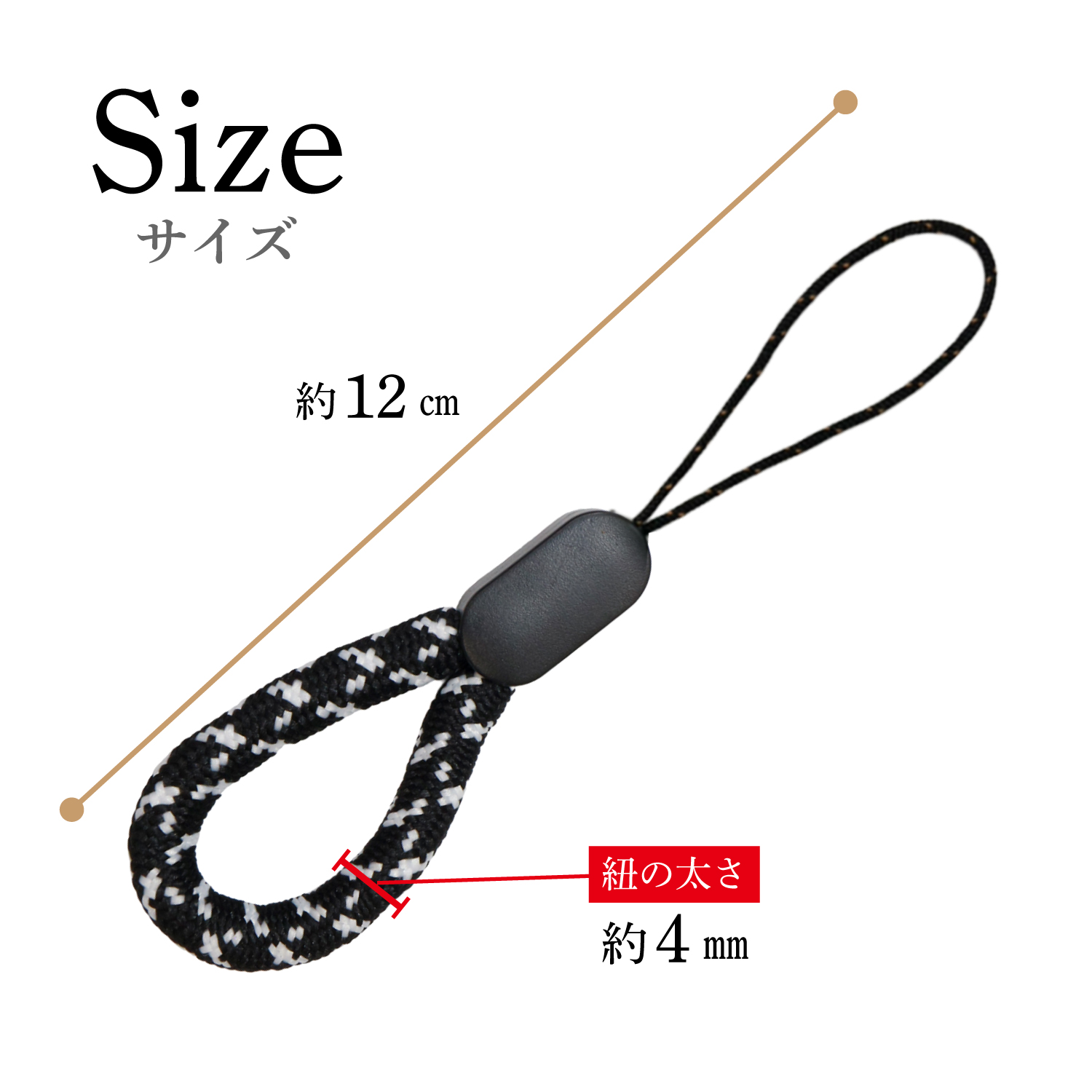 ●【サイズ】全長:約12cm、紐の太さ:約4mm