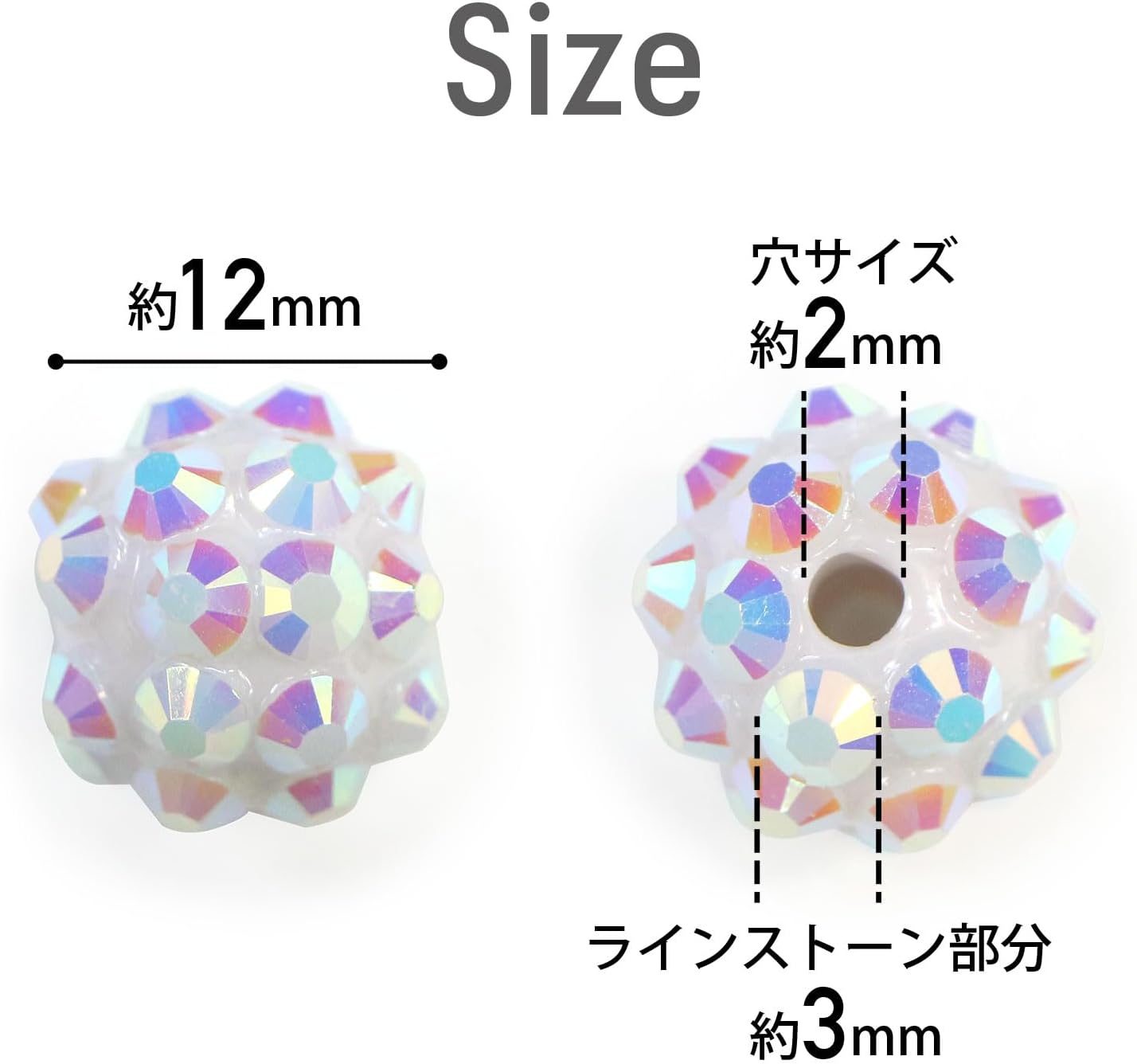 ラインストーン ビーズ シャンバラビーズ 12mm 25個入り ホワイト 白 オーロラ 手芸 パーツ アクセサリー 大きめ 大粒 ビーズパーツ きらきらぷんぷん丸 CB-068