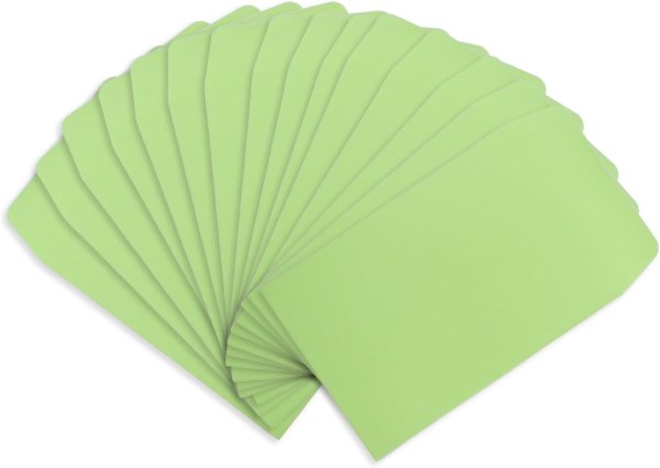 ミニ封筒 名刺サイズ 縦型 無地 糊付き 15枚入り ライトグリーン 緑 カラー 封筒 小型 メッセージカード入れ ポチ袋 お年玉袋 きらきらぷんぷん丸 HUT-005