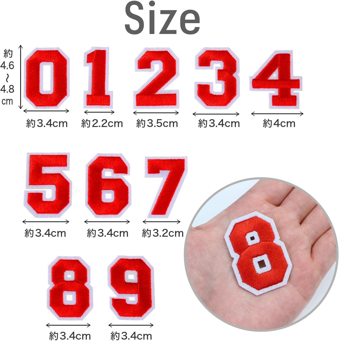 アイロンワッペン 数字 【レッド】 赤 0~9 各2枚入り 刺繍 アップリケ ナンバー 番号 おしゃれ 推し活 手芸 DIY きらきらぷんぷん丸 APK-003