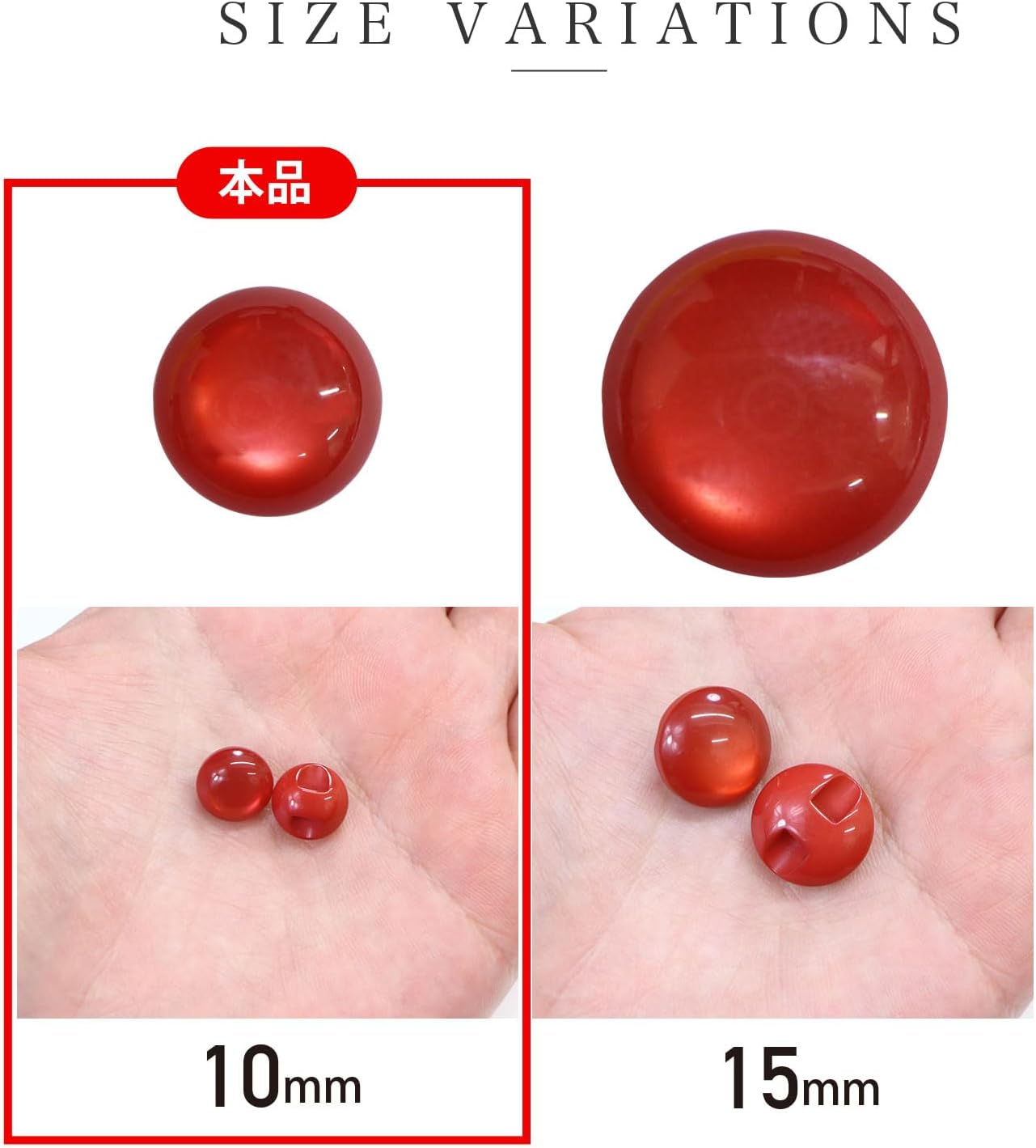 カラークリアボタン【レッド】丸型 裏穴 トンネル 12個入り【10mm】光沢 立体 3D 手芸 きらきらぷんぷん丸 B-1162