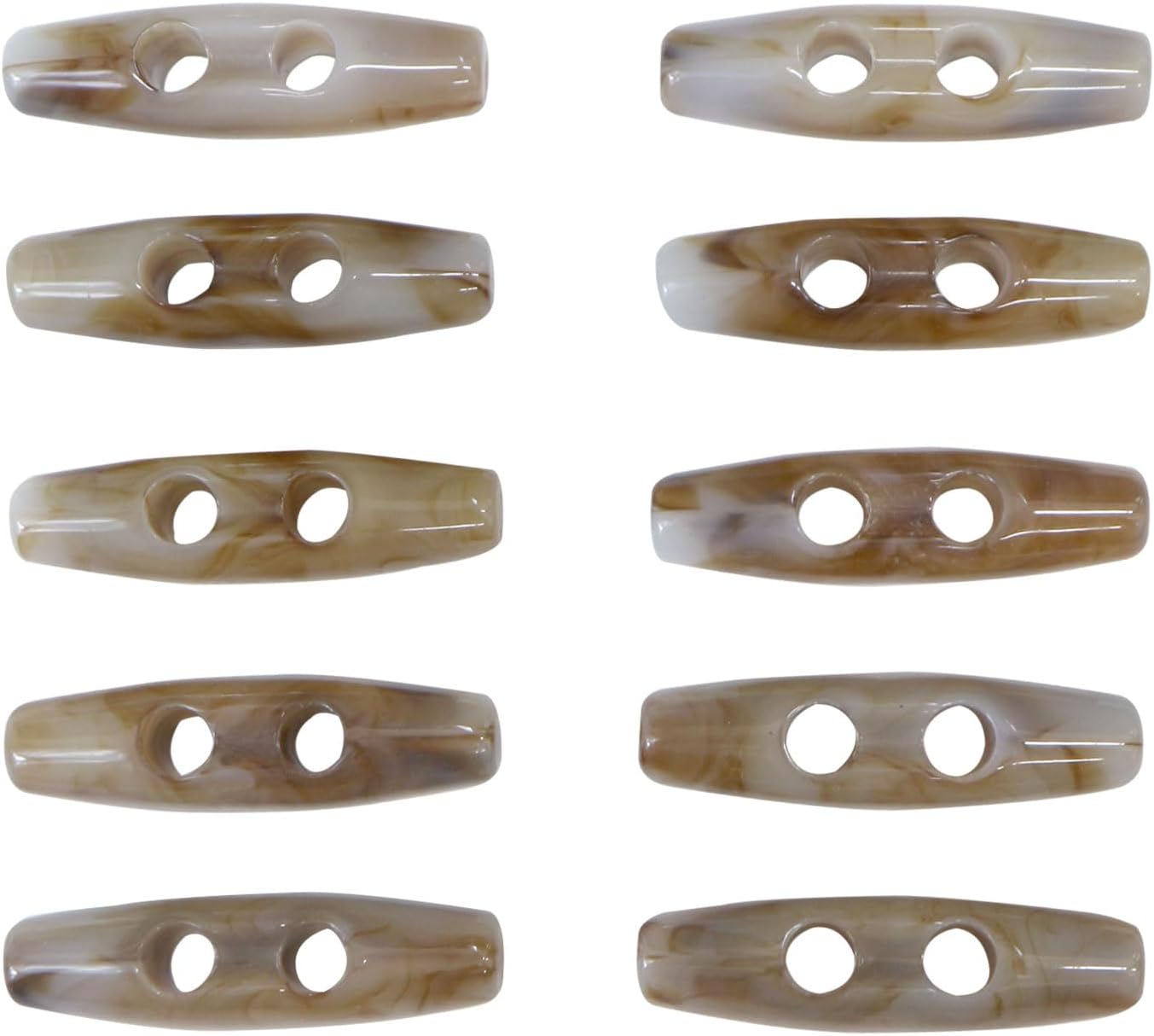 トグルボタン 39mm 10個入り 【ホワイト&ブラウン】 白 茶色 マーブル模様 水牛調 アクリル樹脂製 留め具 ダッフルコート 手芸 きらきらぷんぷん丸 B-1166