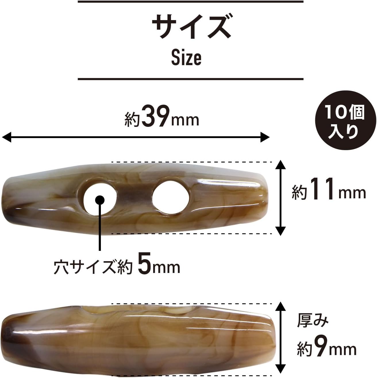 トグルボタン 39mm 10個入り 【ホワイト&ブラウン】 白 茶色 マーブル模様 水牛調 アクリル樹脂製 留め具 ダッフルコート 手芸 きらきらぷんぷん丸 B-1166 [B-1166]