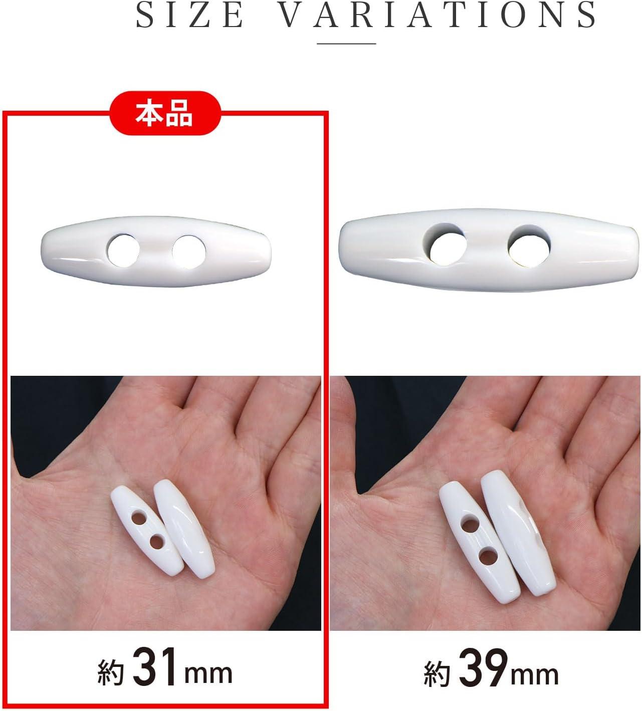 トグルボタン 31mm 10個入り 【ホワイト】 白 アクリル樹脂製 留め具 ダッフルコート バッグ用 手芸 きらきらぷんぷん丸 B-1170