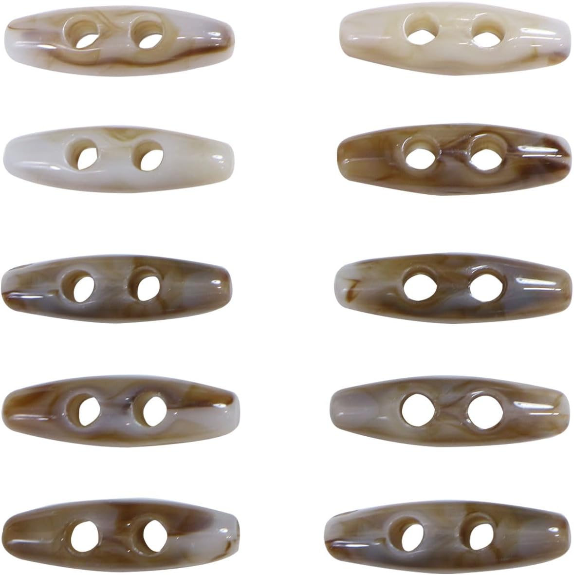 トグルボタン 31mm 10個入り 【ホワイト&ブラウン】 白 茶色 マーブル模様 水牛調 アクリル樹脂製 留め具 ダッフルコート 手芸 きらきらぷんぷん丸 B-1171