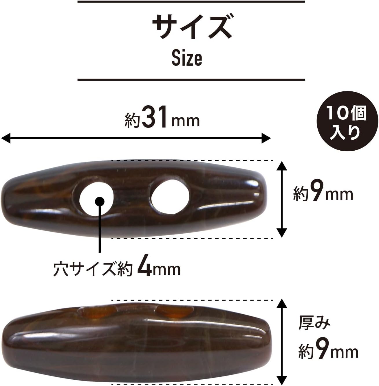 トグルボタン 31mm 10個入り 【ダークブラウン&ホワイト】 茶色 白 マーブル模様 水牛調 アクリル樹脂製 留め具 ダッフルコート きらきらぷんぷん丸 B-1172 [B-1172]