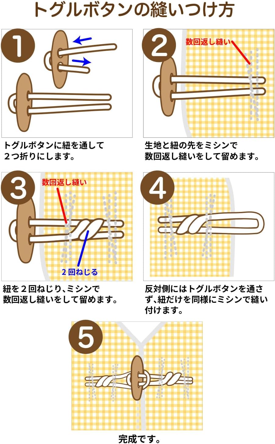 4. 反対側にはトグルボタンを通さず、紐だけを同様にミシンで縫い付けます。