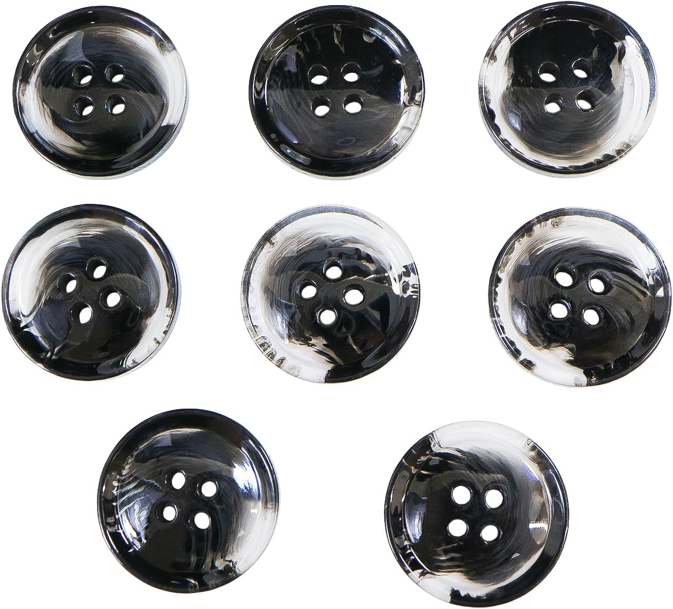 四つ穴ボタン 水墨画風 マーブル グラデーション【ブラック】黒 クリア 8個入り【21.5mm】樹脂製 手芸 おしゃれ きらきらぷんぷん丸 B-1211