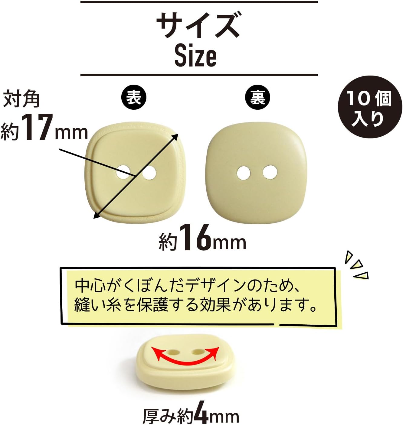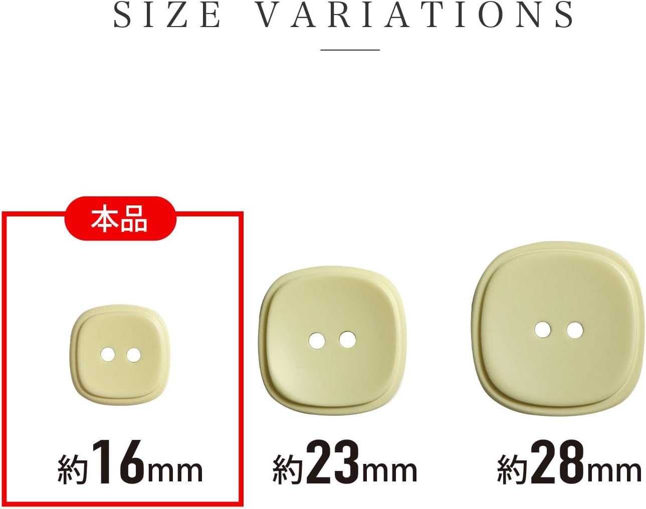 【特徴】マットな質感と柔らかなフォルムが特徴の、樹脂製スクエアボタン。 ツヤを抑えた上品な仕上がりで、ナチュラル・シンプル・モード系の作品にもよく合います。