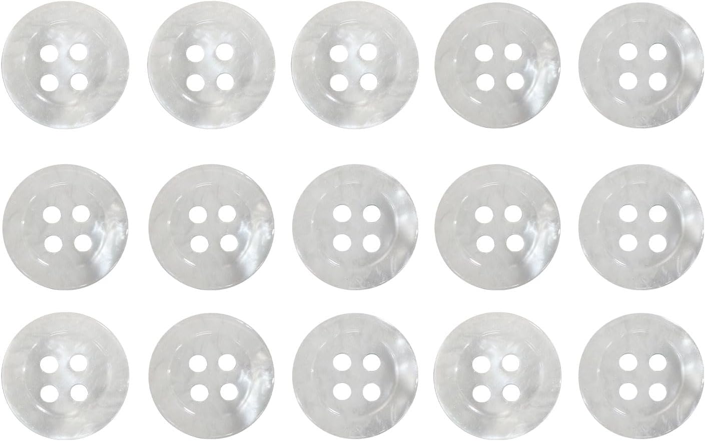 四つ穴ボタン マーブル 光沢【ホワイト】白 15個入り【11mm】ツヤあり 樹脂製 手芸 おしゃれ きらきらぷんぷん丸 B-1243