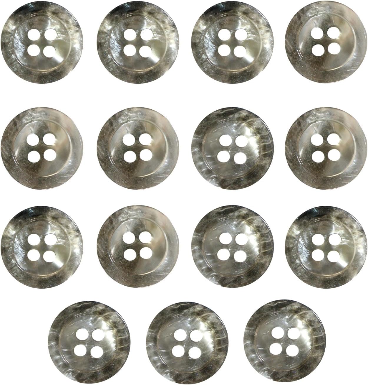四つ穴ボタン マーブル 光沢【グレー】灰色 15個入り【15mm】ツヤあり 樹脂製 手芸 おしゃれ きらきらぷんぷん丸 B-1249