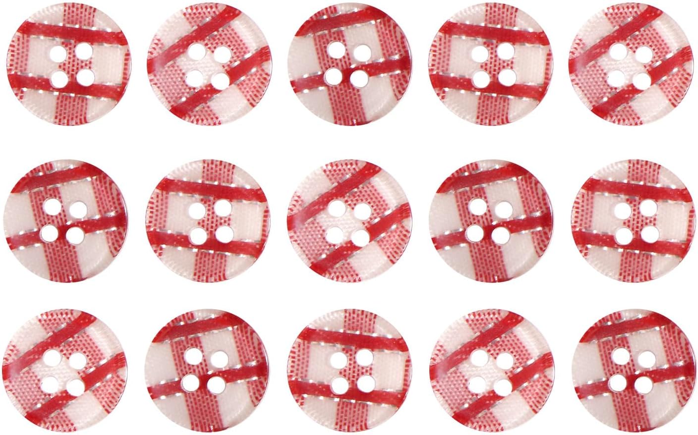 四つ穴ボタン ギンガムチェック フチなし【レッド】赤 15個入り【12mm】ランダム 樹脂製 手芸 かわいい おしゃれ きらきらぷんぷん丸 B-1262