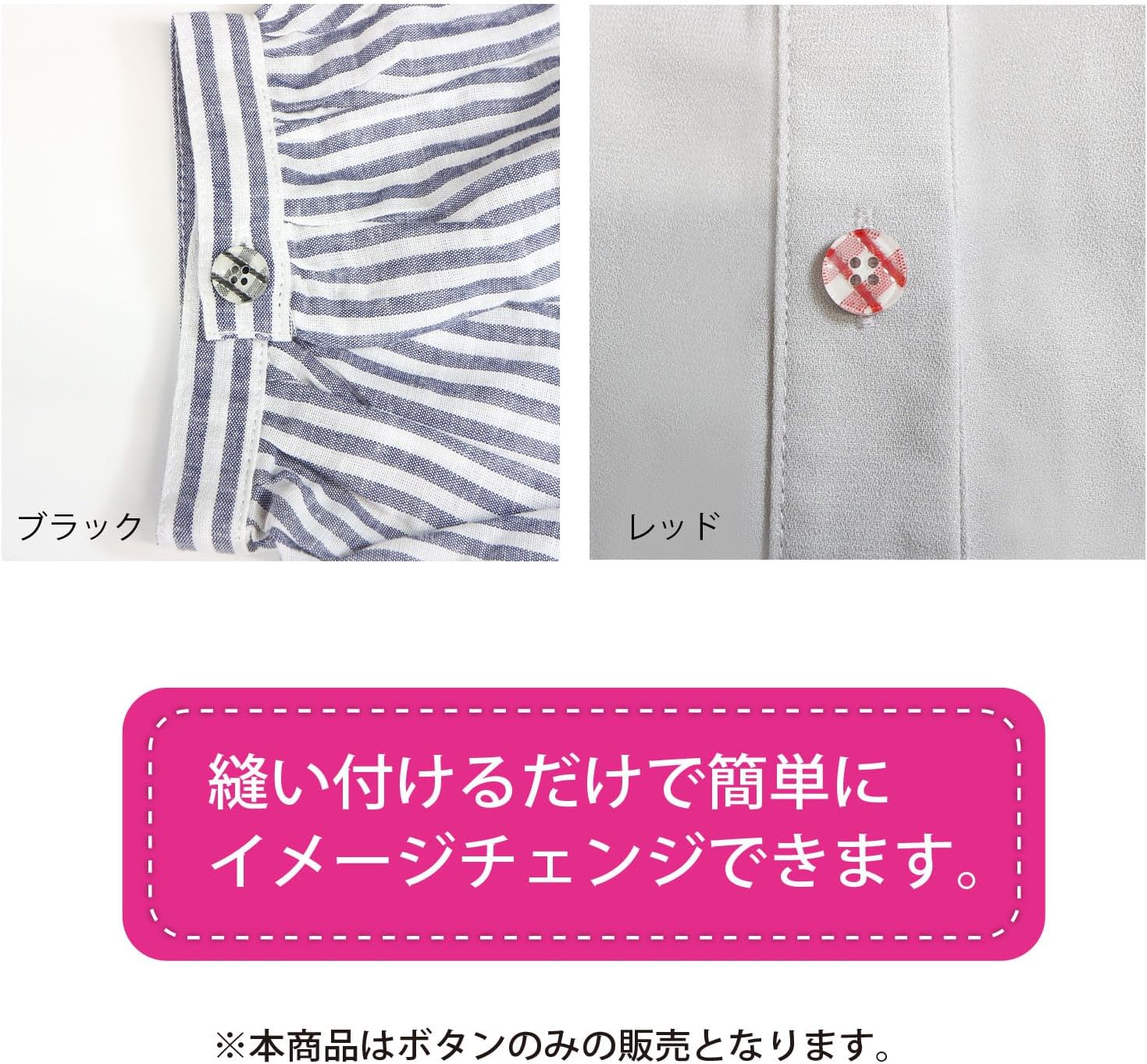 シャツやブラウスのボタンの付け替えはもちろん、小物づくりやハンドメイド作品にも幅広く活躍します。