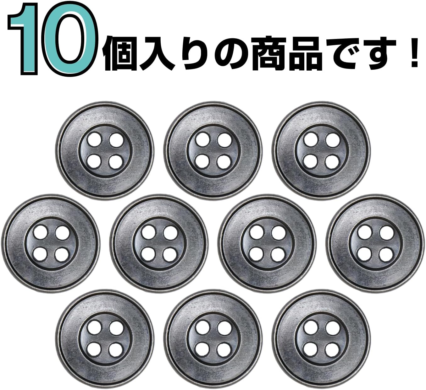 メタルボタン 四つ穴 シンプル【 アンティークシルバー】銀 丸ボタン 金属 手芸 10個入【15mm】きらきらぷんぷん丸 B-1273