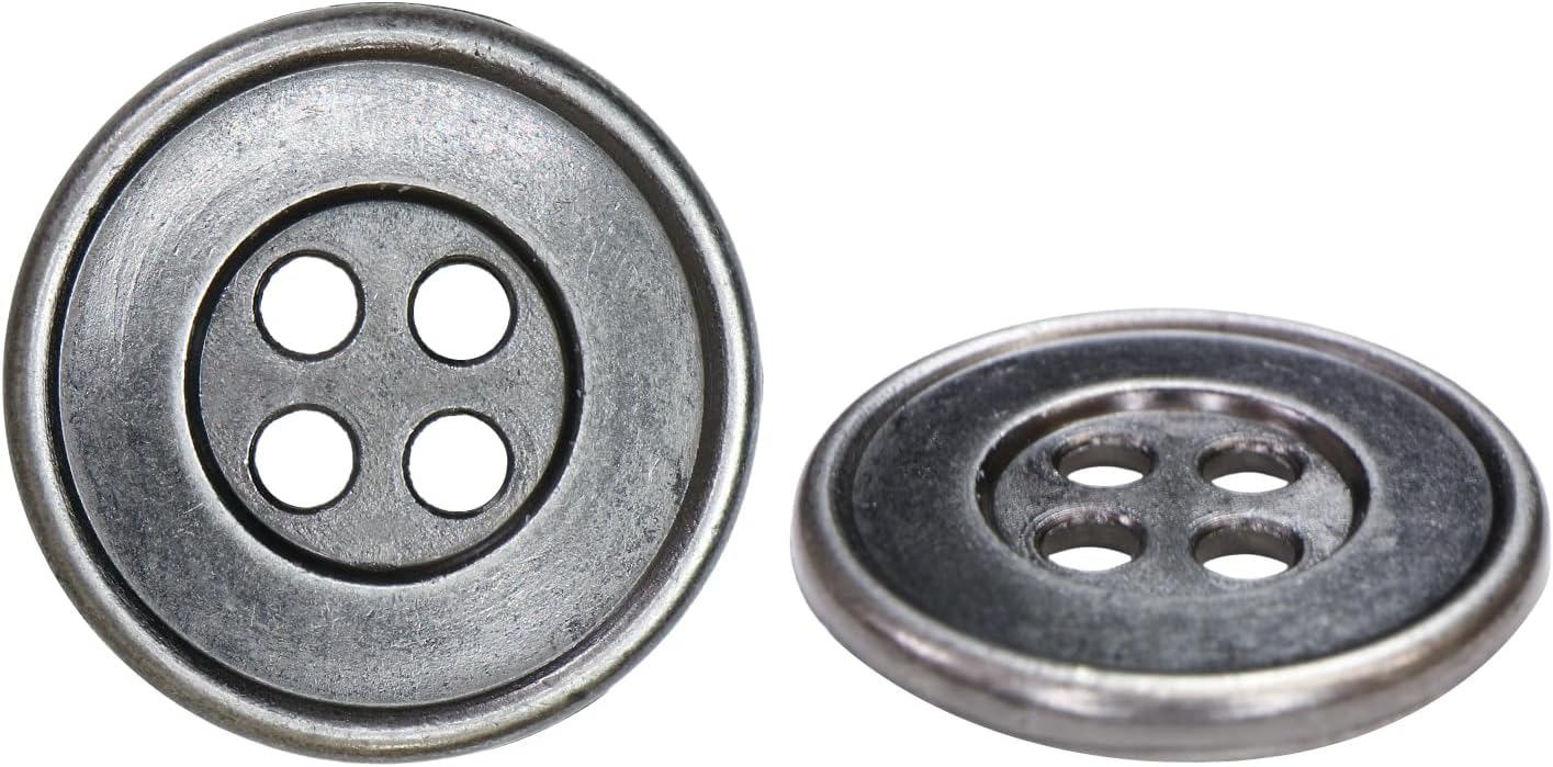 メタルボタン 四つ穴 シンプル【 アンティークシルバー】銀 丸ボタン 金属 手芸 10個入【18mm】きらきらぷんぷん丸 B-1274