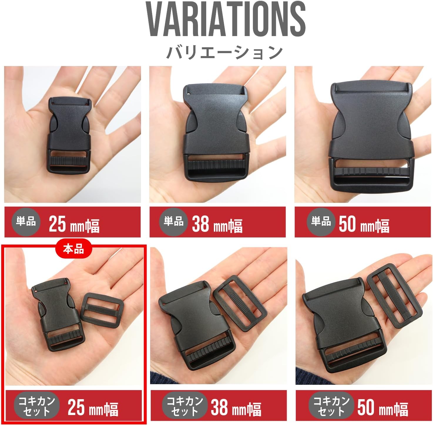 【用途】ウエストポーチやバッグ、リュックなどのストラップに最適なバックルです。付属のコキカンを使用することで、より安定した調節や固定が行えます。