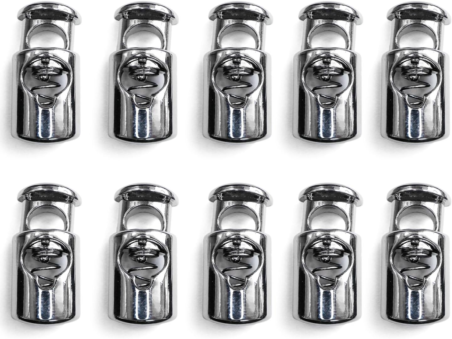 コードストッパー 紐止め 樽型 金属製 1つ穴 穴経5mm【シルバー 鏡面仕上げ】10個入 スプリング メタル 靴紐 留め具 金具 パーツ きらきらぷんぷん丸 BK-035