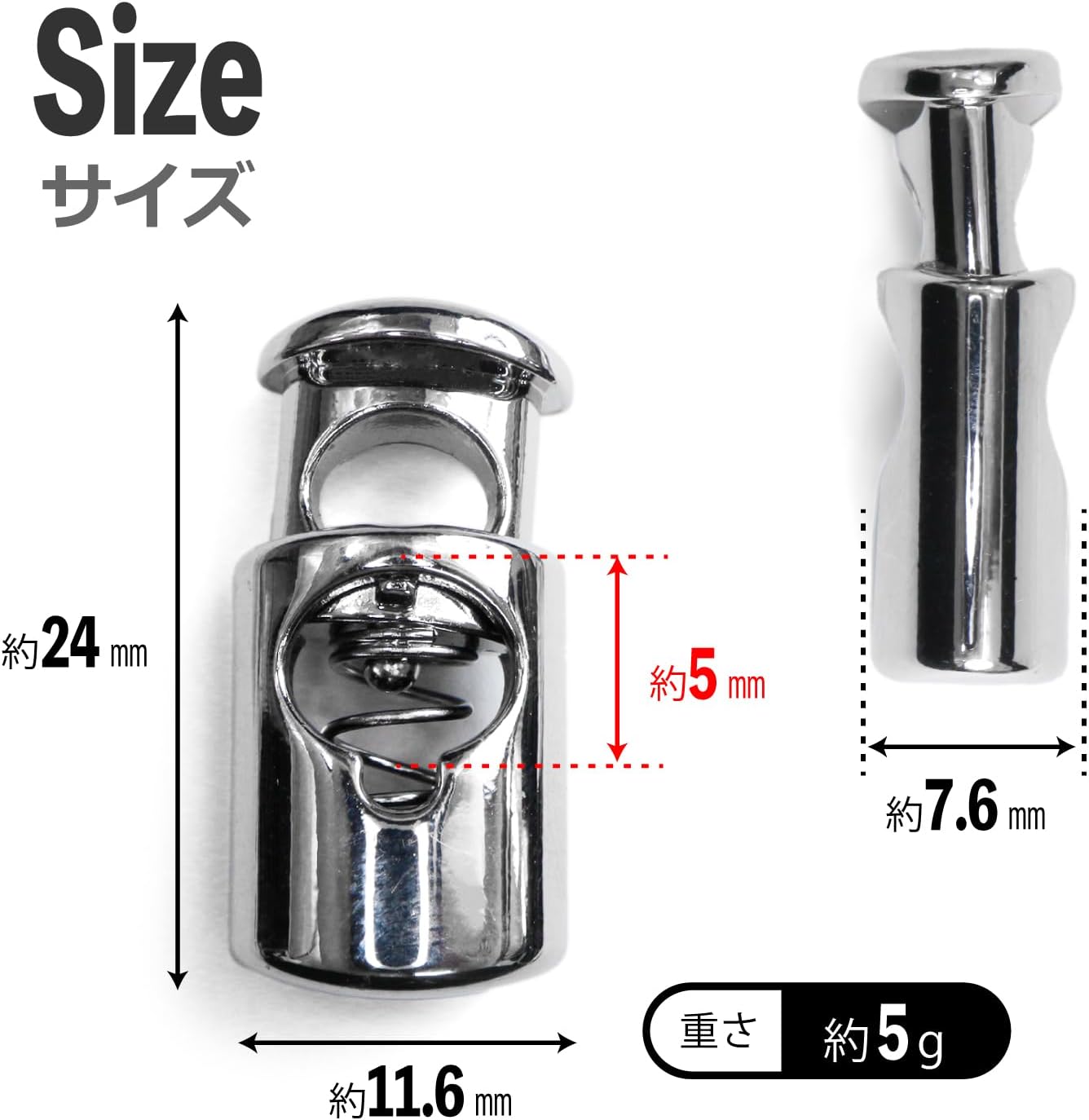 【サイズ】約24mm×11.6mm 穴部分約5mm 【重さ】1個 約5g