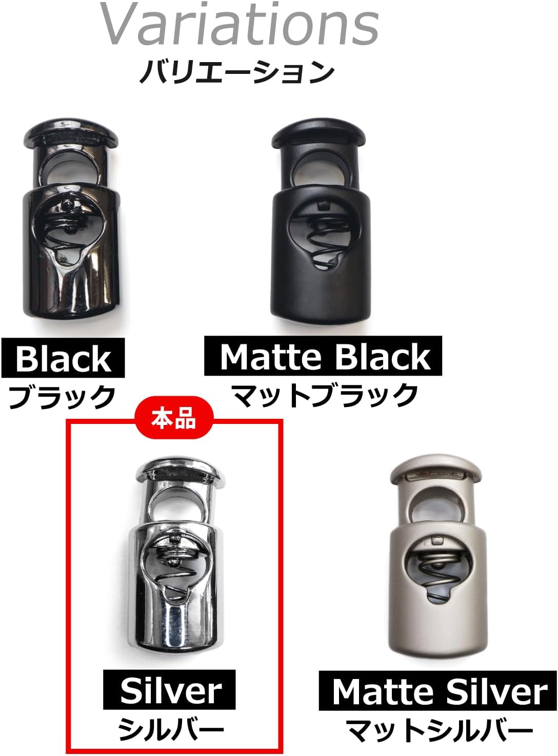 【用途】袋の開口部や衣類などの紐に取り付ければ、結ばずに長さの調整や固定が可能です。日常使いからハンドメイド、アウトドア用品まで幅広く活躍します。