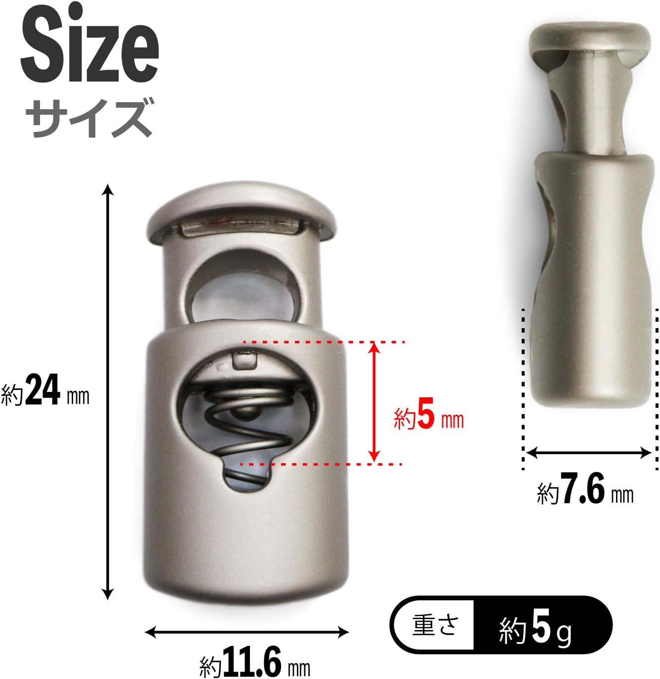 【用途】袋の開口部や衣類などの紐に取り付ければ、結ばずに長さの調整や固定が可能です。日常使いからハンドメイド、アウトドア用品まで幅広く活躍します。