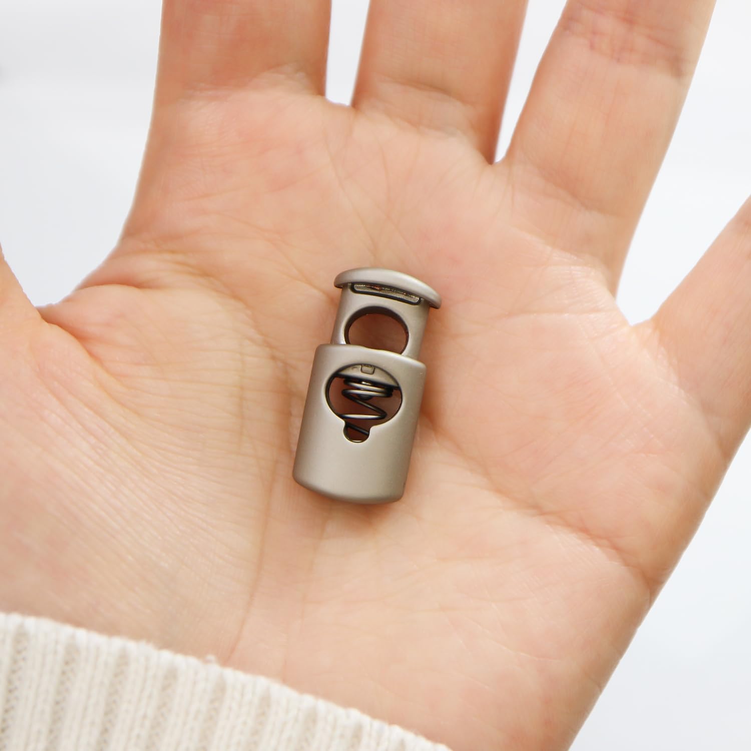 コードストッパー 紐止め 樽型 金属製 1つ穴 穴経5mm【マットシルバー】10個入 スプリング メタル 靴紐 留め具 金具 パーツ きらきらぷんぷん丸 BK-036