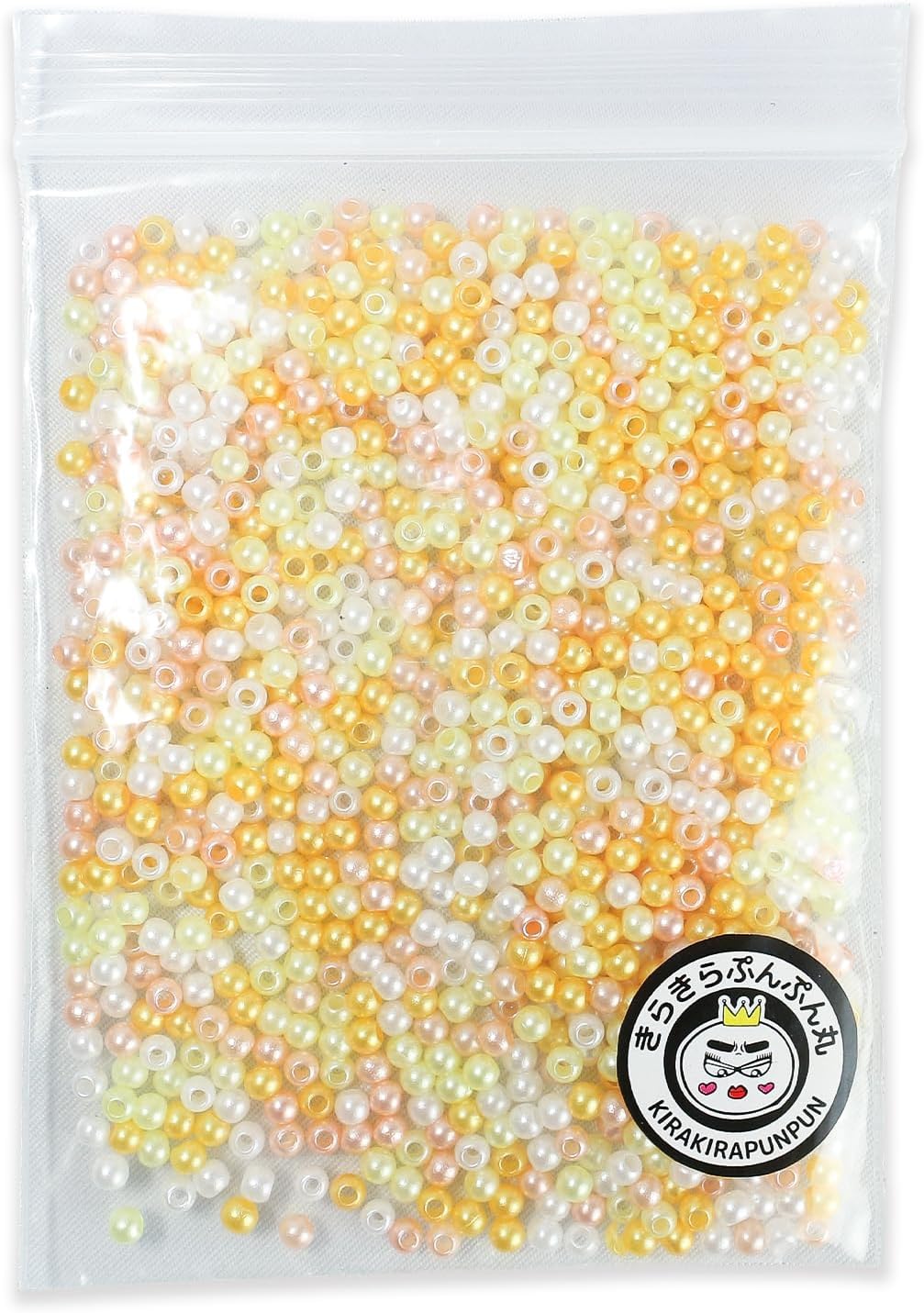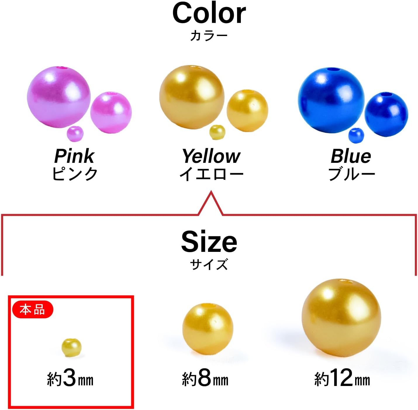 パールビーズ カラフル 3mm【イエロー系】黄 約998粒 穴あり 両穴 樹脂 丸玉 光沢 大容量 お得セット 手芸用品 ハンドメイド きらきらぷんぷん丸 CB-076