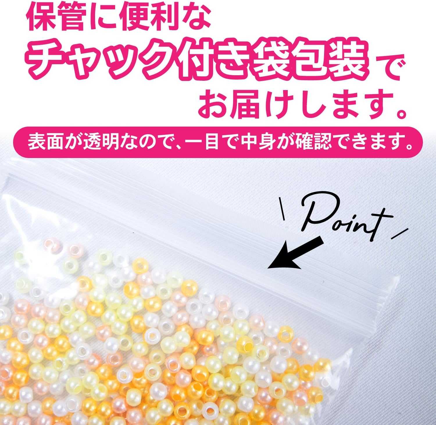 【特徴】同系色3色と白1色を組み合わせたパール風ビーズです。光沢感のある表面は上品な高級感を演出し、アクセサリー作りやデコレーションに最適です。ハンドメイドアクセサリー(ネックレス、ブレスレット、イヤリングなど)はもちろん、衣装や雑貨の装飾、DIYクラフトにも幅広く活躍。