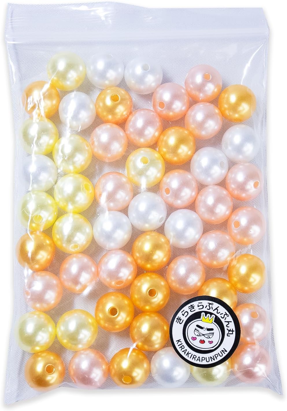 パールビーズ カラフル 12mm【イエロー系】黄 約48粒 穴あり 両穴 樹脂 丸玉 光沢 大容量 お得セット ミックス ハンドメイド きらきらぷんぷん丸 CB-078 [CB-078]