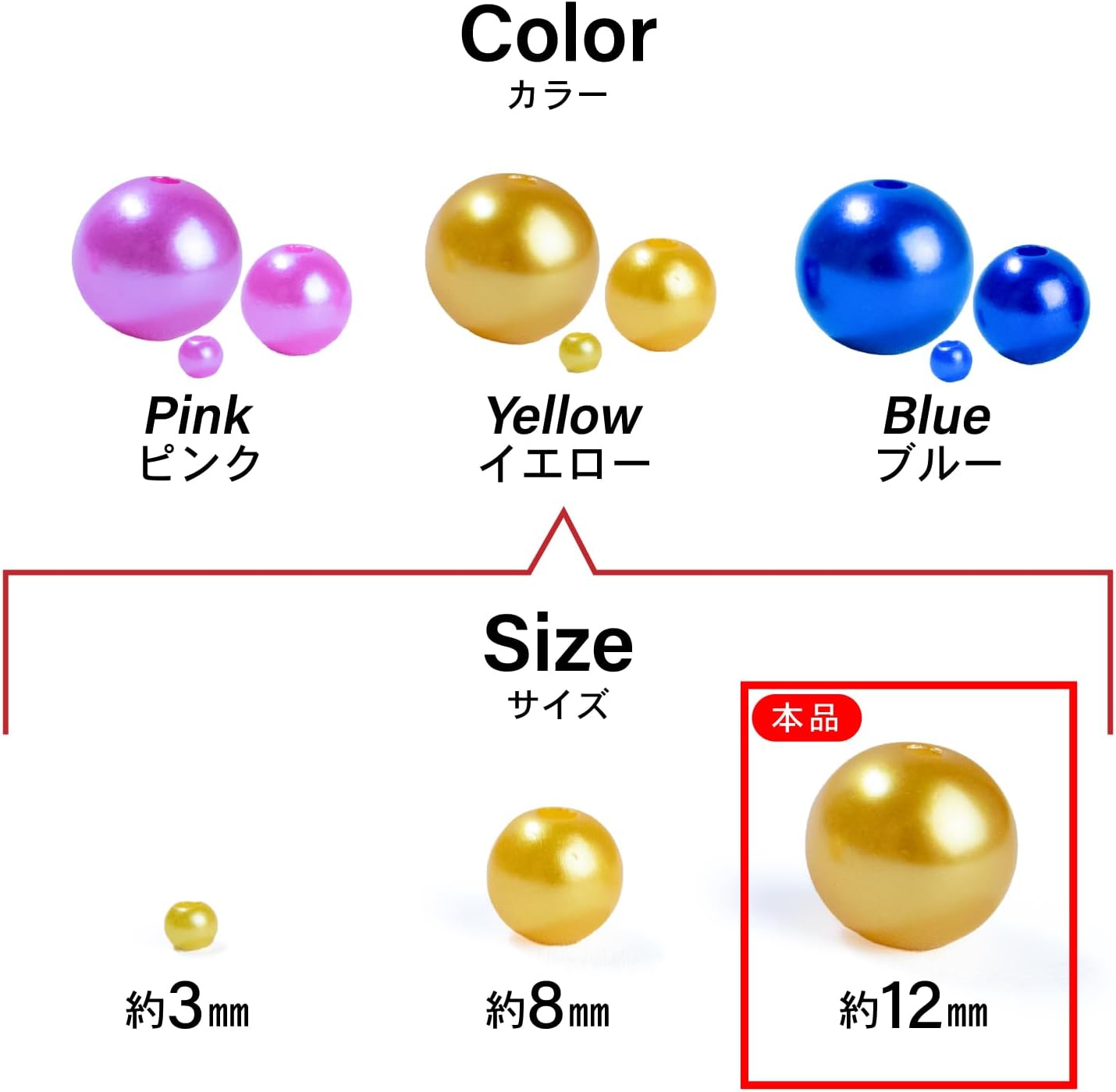 ・3mm、8mm、12mmの豊富なサイズ展開で、アクセサリーから雑貨デコレーションまで多用途に対応。