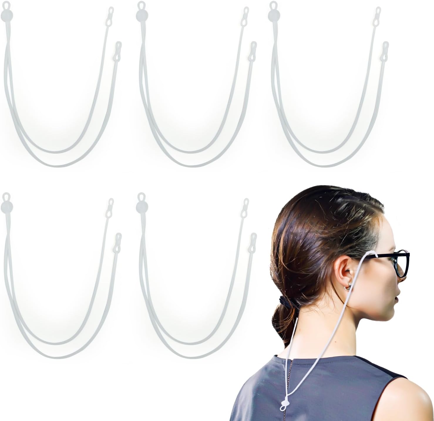 メガネチェーン シリコン製 【ホワイト】 白 5本入り 72cm グラスコード ストラップ 眼鏡 紐 アクセサリー 首から下げる 落下防止 きらきらぷんぷん丸 EGC-028