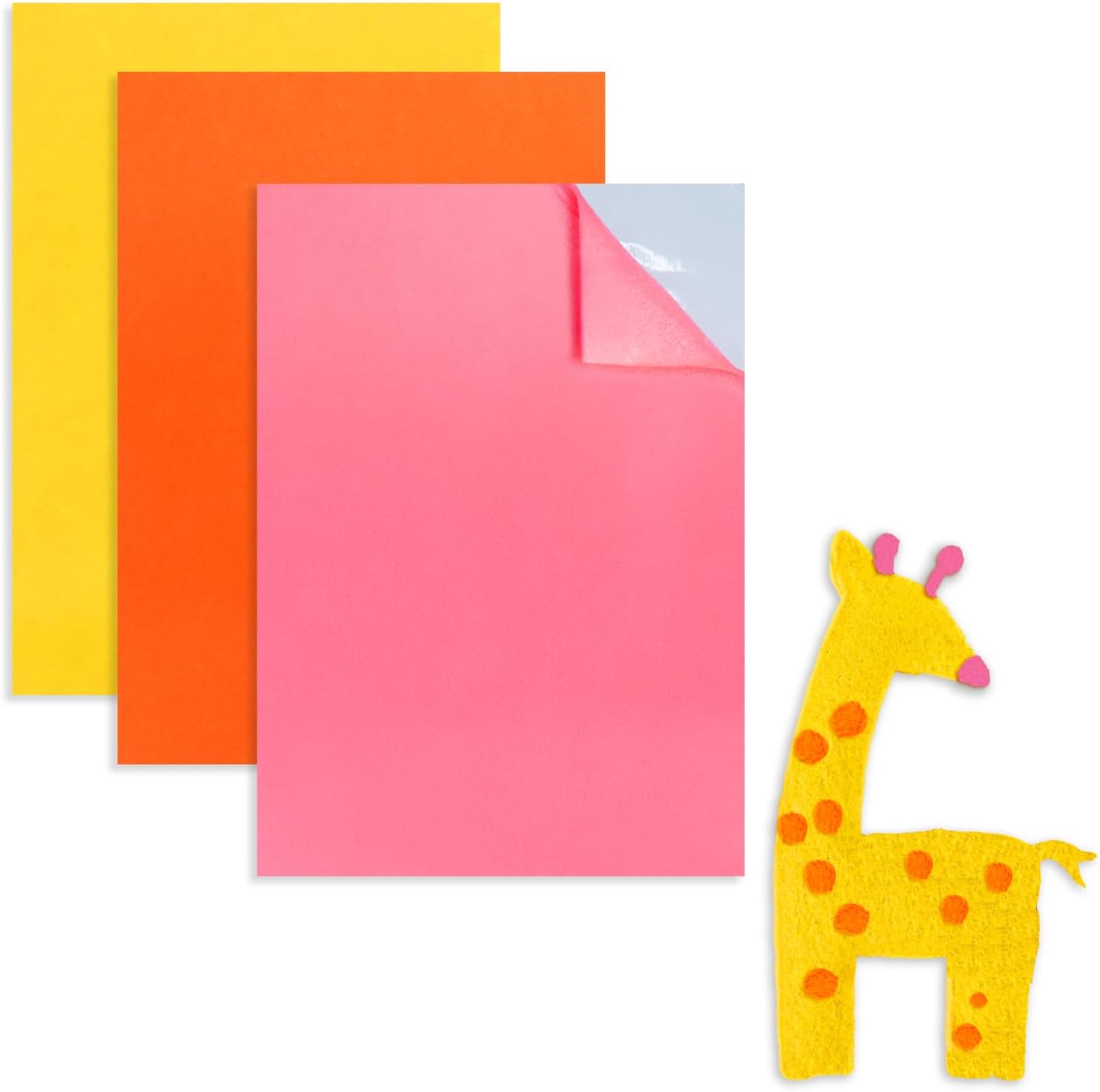 フェルト シール A4サイズ 3枚入り 【Bセット】 イエロー オレンジ ピンク 黄色 フリーカット 大判サイズ 粘着 貼れる クラフト きらきらぷんぷん丸 FET-002