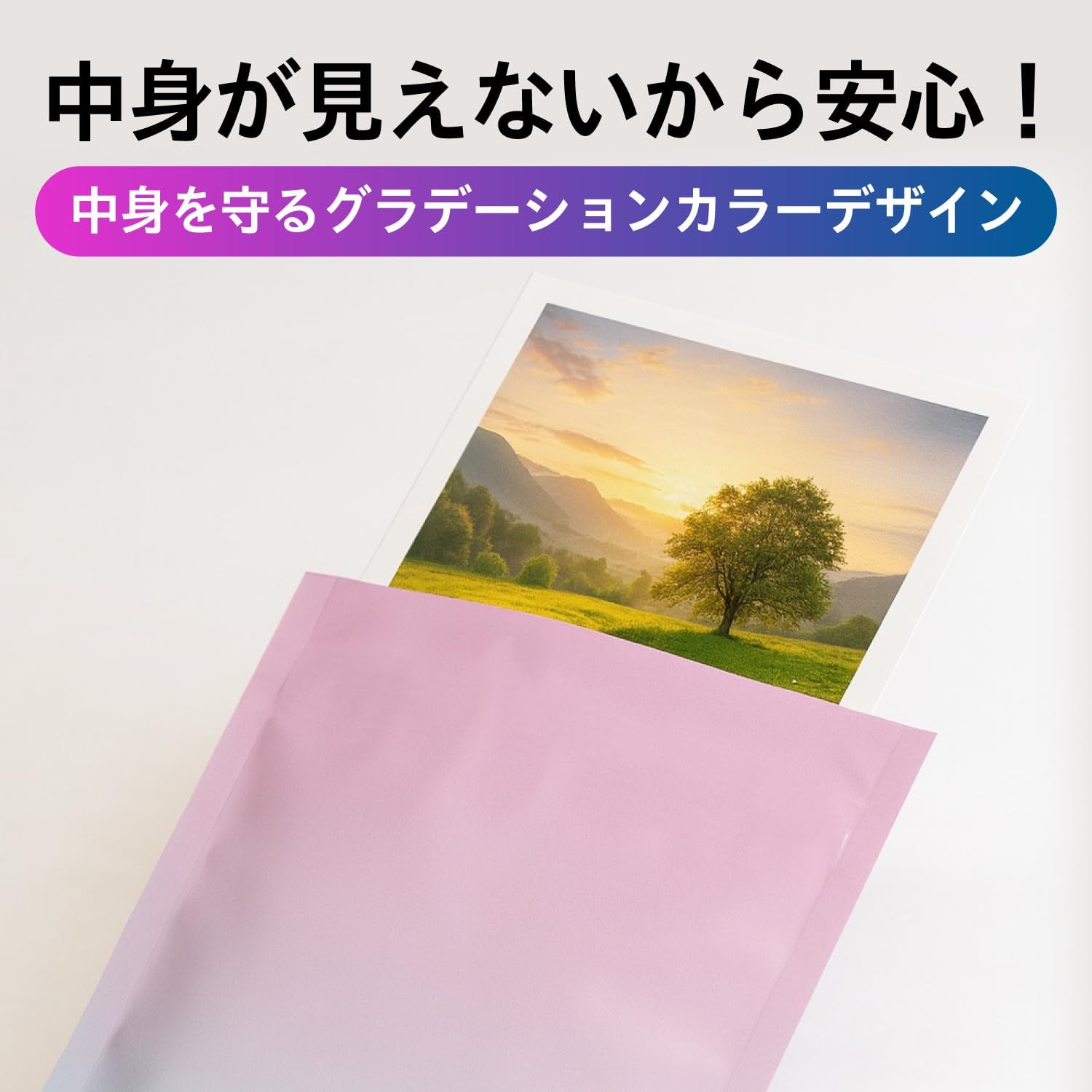【特 徴】中身が見えないライトブルー&ピンクのグラデーションパウチ。華やかな色合いでサプライズ感を演出。ランダム配布やシークレット封入に最適。熱圧着でしっかり密封し、大切な写真やトレカをホコリや湿気から守ります。