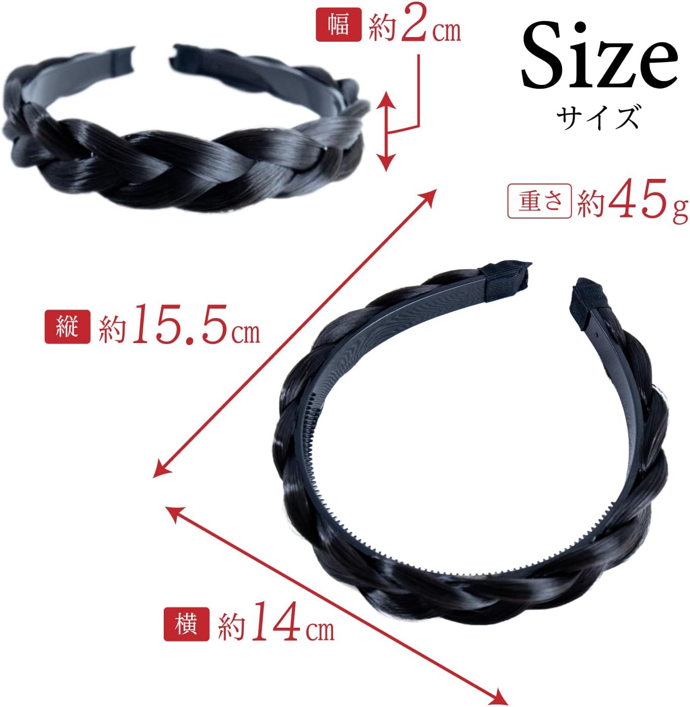 【特徴】三つ編みデザインのカチューシャです。表面は髪の毛のような質感になっています。ヘアアレンジやファッションのアクセントに最適です。デート、結婚式、パーティー、入学式・卒業式などのフォーマルシーンから、普段使いまで大活躍。