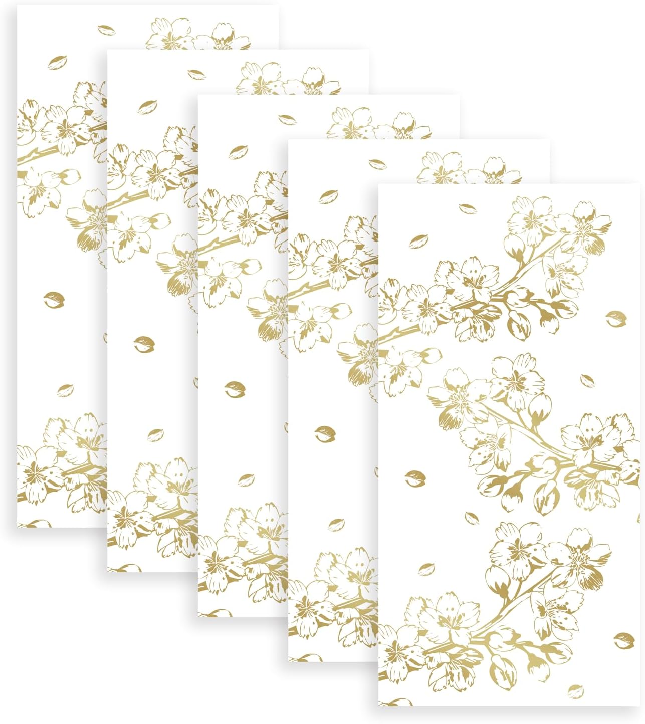 ポチ袋 【桜デザイン】 箔押し加工 5枚入り ゴールド 金 お札サイズ 長札 お年玉袋 封筒 【89x179+36mm】 きらきらぷんぷん丸 HUT-012 [HUT-012]