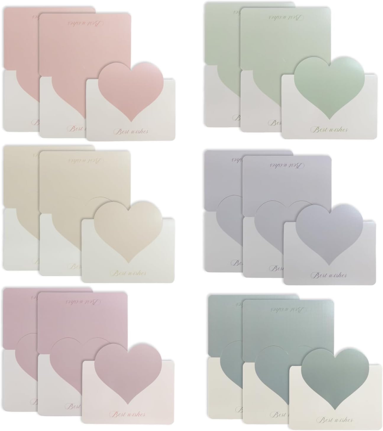 【デザイン】ハート型のデザインで、下部には「Best wishes」と印字されています。 【セット内容】合計18枚(6色x各3枚)