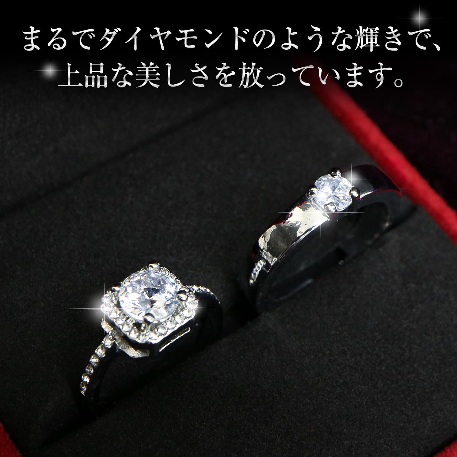 ペアリング 指輪 カップル ジルコニア サイズ調整可能 エンゲージ サプライズ【2個セット】プロポーズ演出 ジュエリーボックス付 きらきらぷんぷん丸 JWLY-011