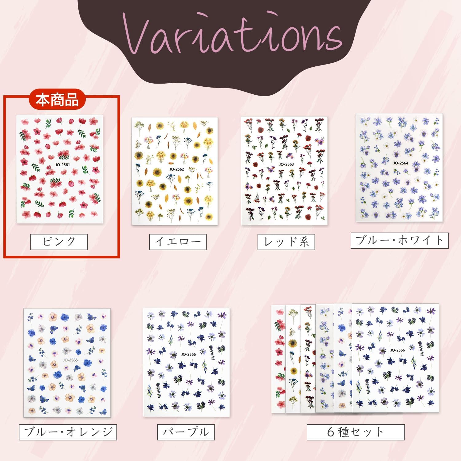 ネイルシール 花 フラワー 植物 【6シート入り】 ピンク系 春 夏 秋 冬 花びら 花柄 ボタニカル ジェルネイル ネイルステッカー きらきらぷんぷん丸 NAS-109