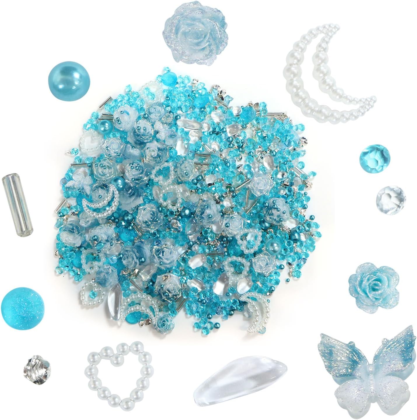 ネイルパーツ デコレーション【ライトブルーセット】ミックスセット 立体 3D ジュエリー 手芸 パール ラインストーン 薔薇 ランダム きらきらぷんぷん丸 NP-050