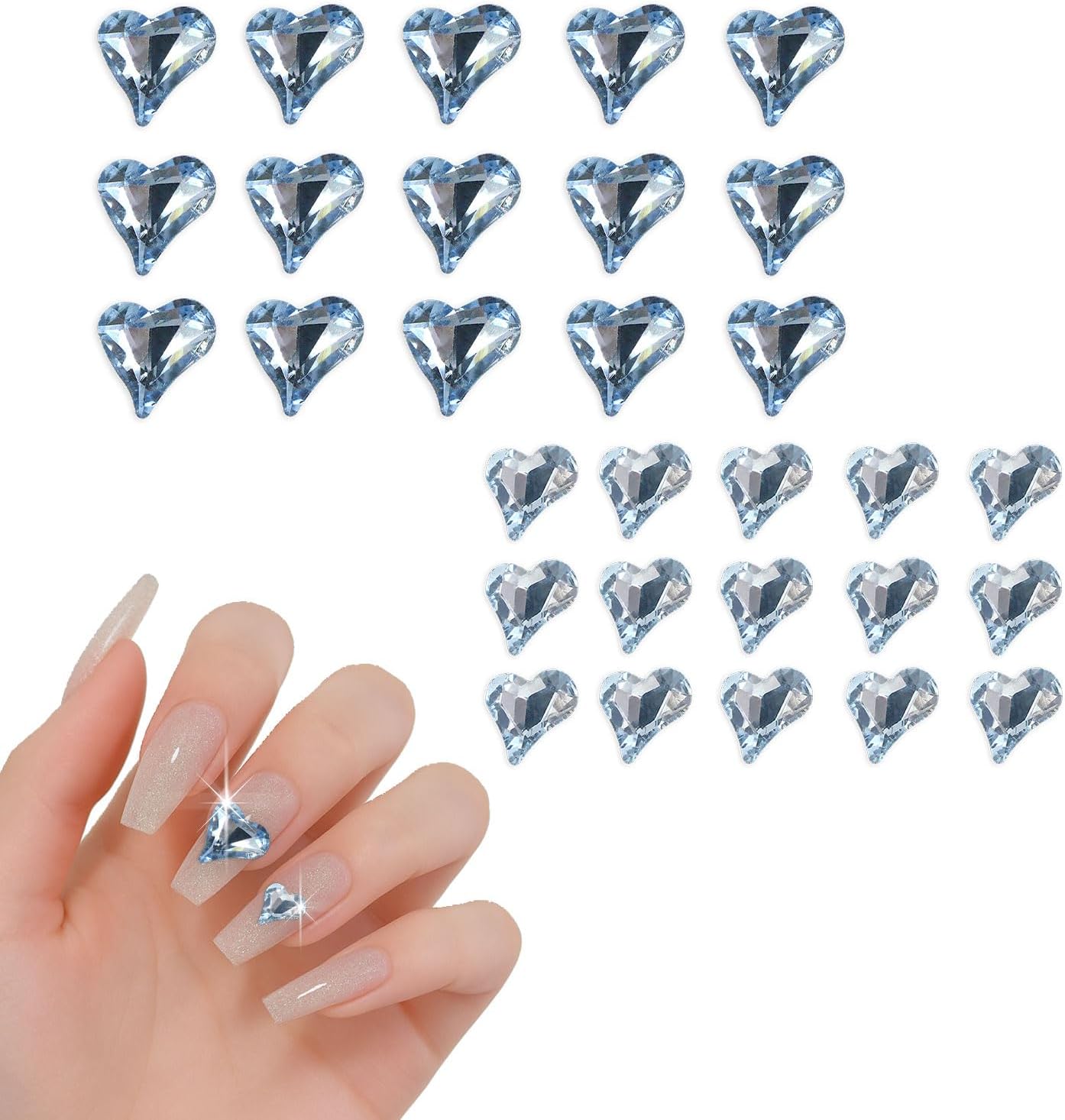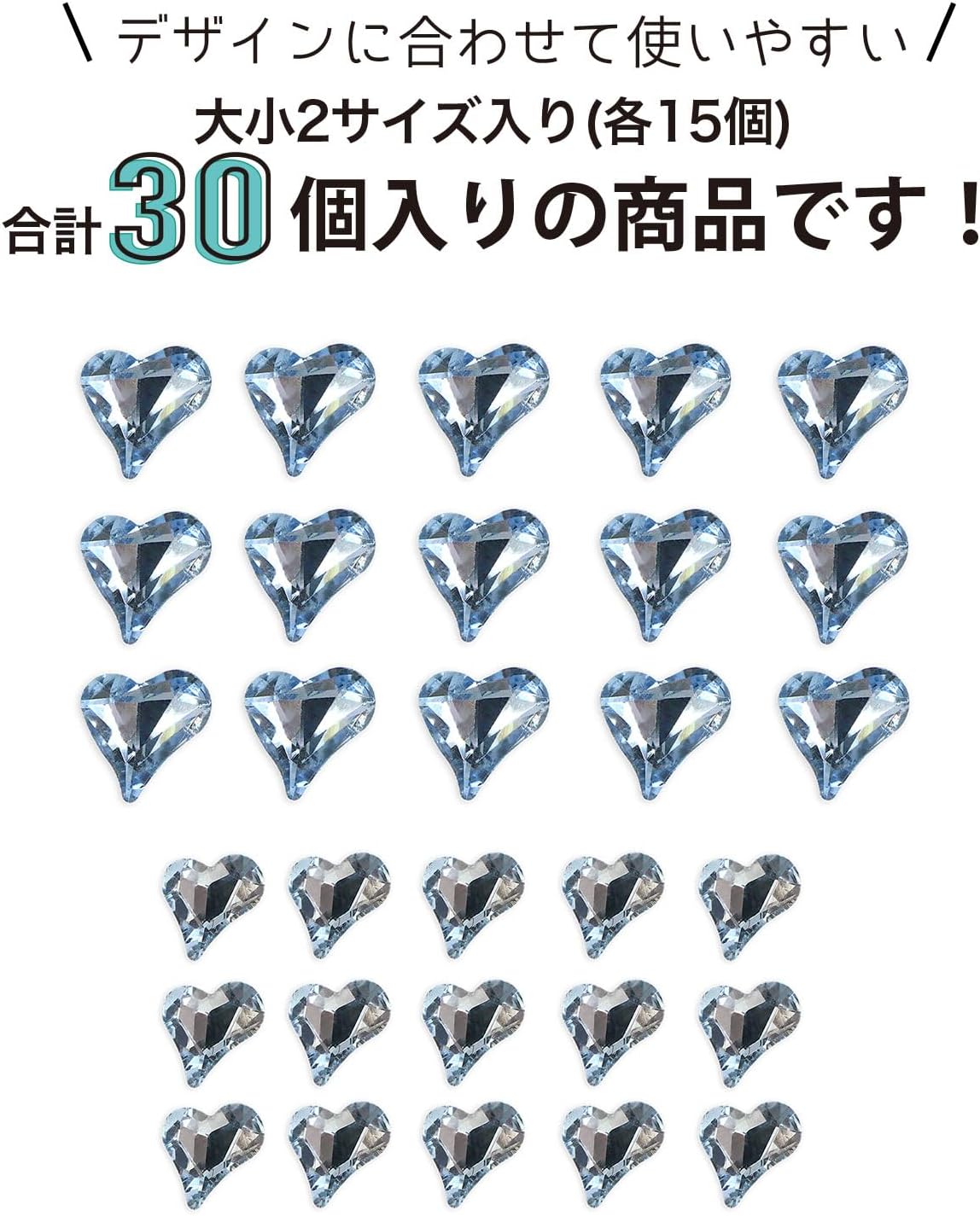 ネイルパーツ ハート 【ライトブルー】 大・小サイズ 30個入り 斜め 透明 立体 パーツ 3D ネイルアート デコパーツ ラインストーン きらきらぷんぷん丸 NP-059