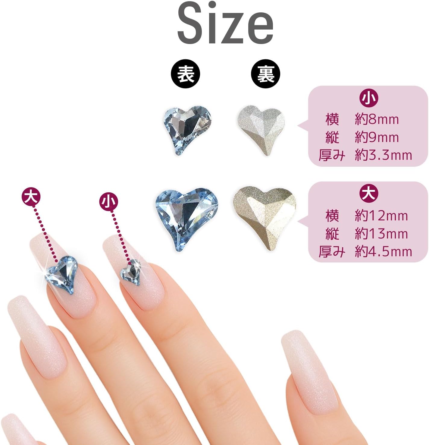 【サイズ】小:約9mm×約8mm 厚み約3.3mm 大:約13mm×約12mm 厚み約4.5mm
