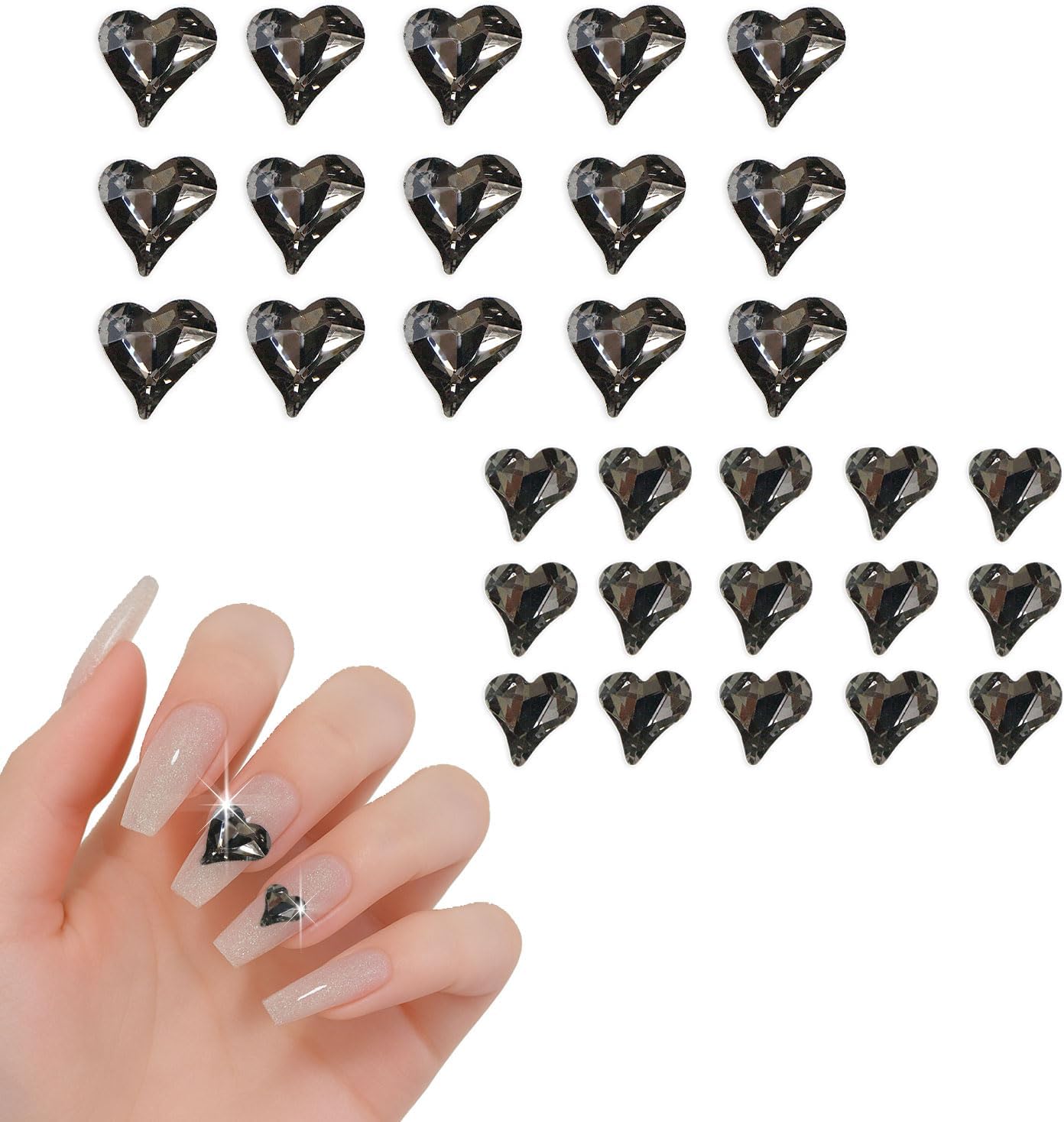ネイルパーツ ハート 【ブラック】 大・小サイズ 30個入り 斜め 透明 立体 パーツ 3D ネイルアート デコパーツ ラインストーン きらきらぷんぷん丸 NP-060