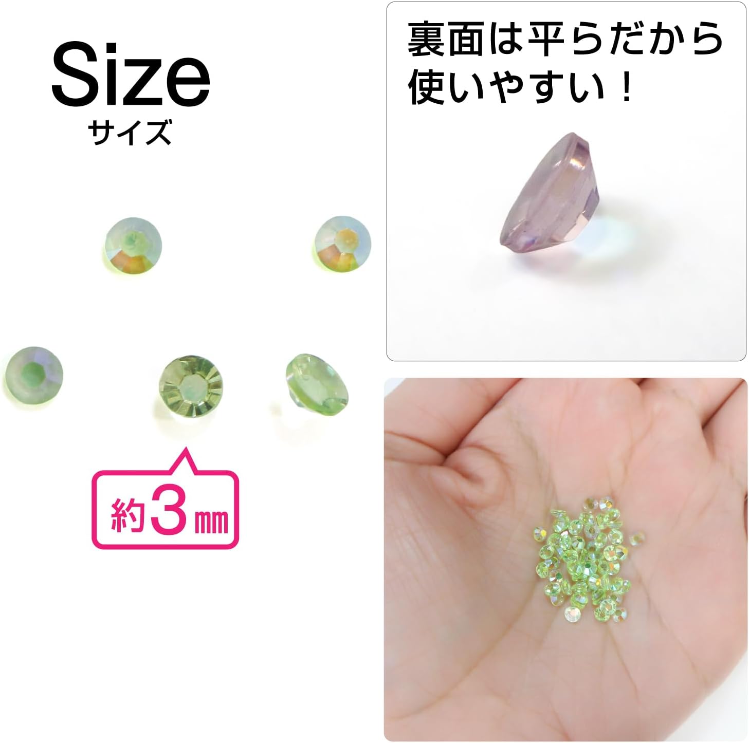 小粒でも存在感があり、ネイルやアクセサリー、小物を華やかに彩ります。