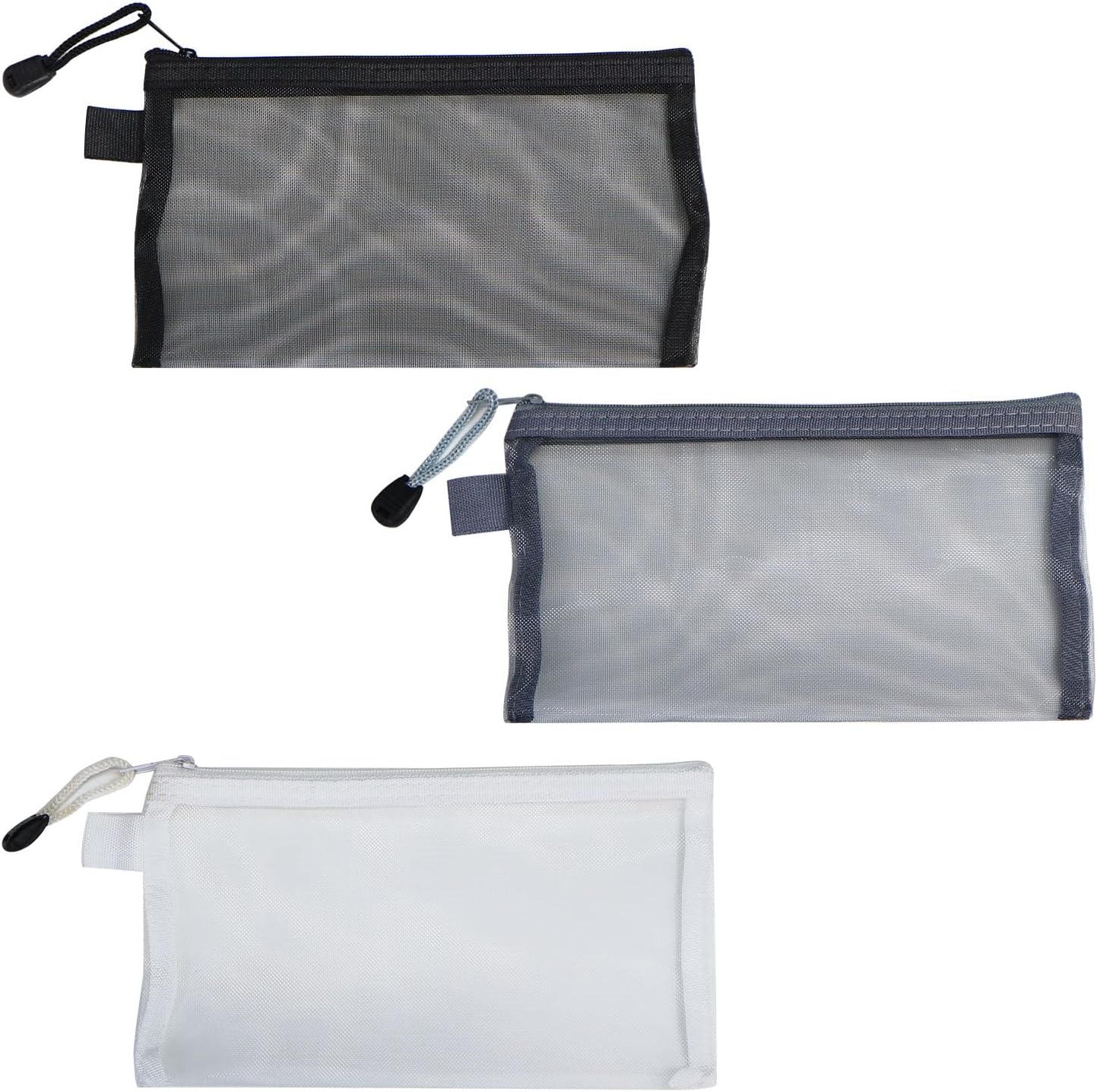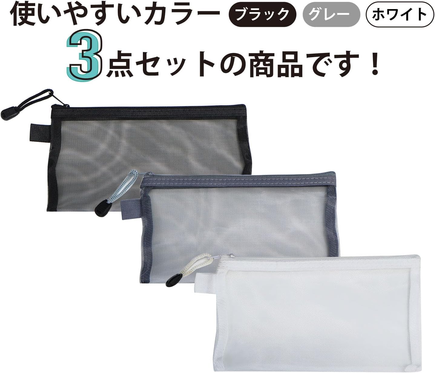 メッシュポーチ 3色セット【3枚入り】ブラック ホワイト グレー 黒 白 化粧品 メイク 小物入れ ペンケース 旅行 出張 吊り下げ きらきらぷんぷん丸 PCA-011 [PCA-011]