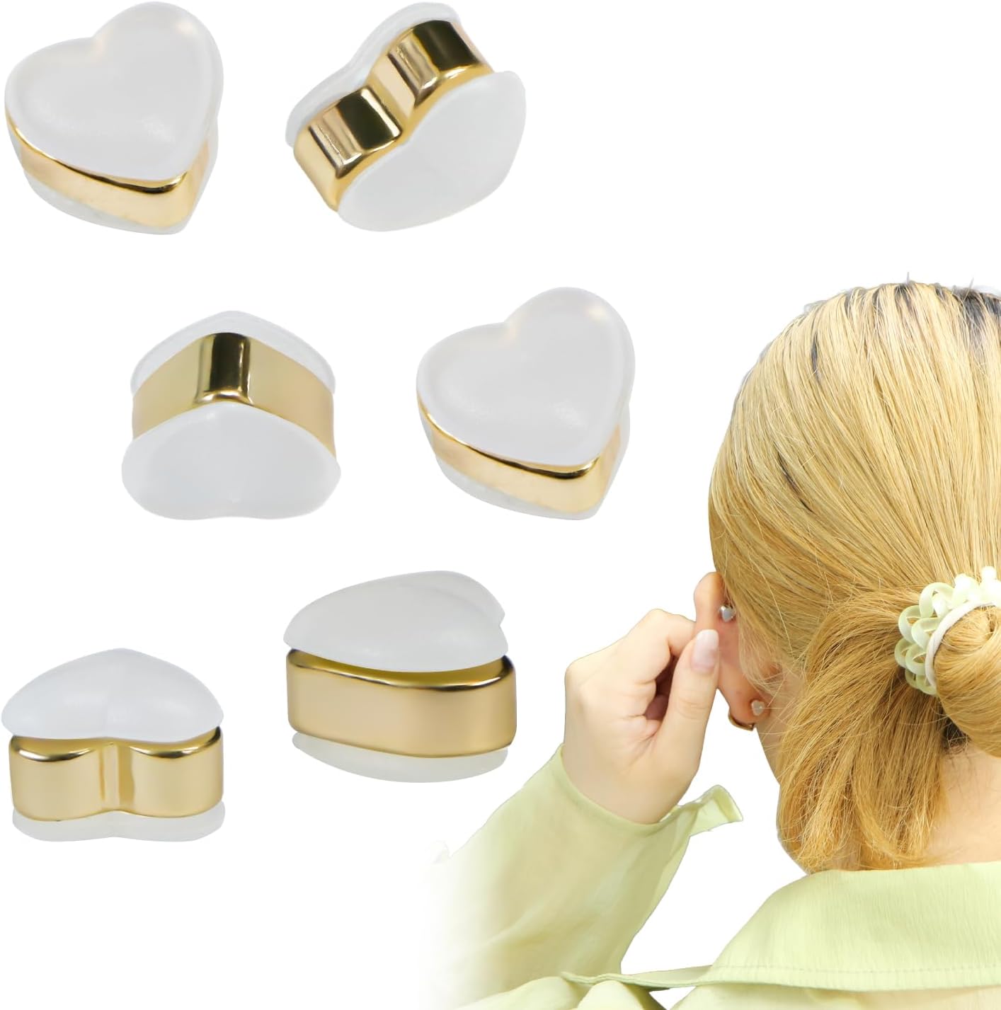 ハート型のシリコンキャッチは、どんなデザインのピアスにも合わせやすく、耳の後ろを可愛く演出します。