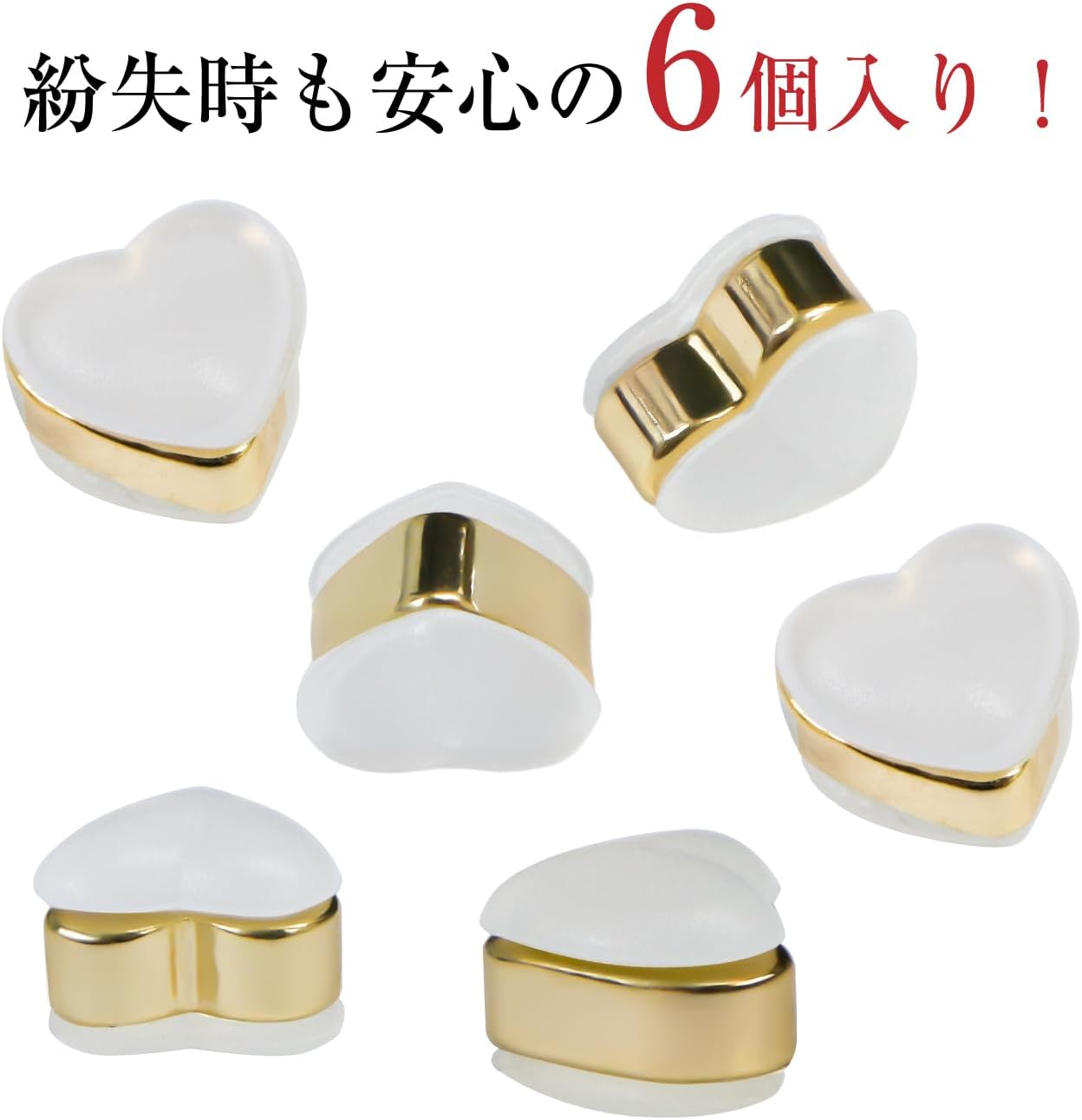 ピアス キャッチ シリコン ハート型【ゴールド】金 6個入 6mm 落ちない かわいい おしゃれ アクセサリー パーツ きらきらぷんぷん丸 PP-004