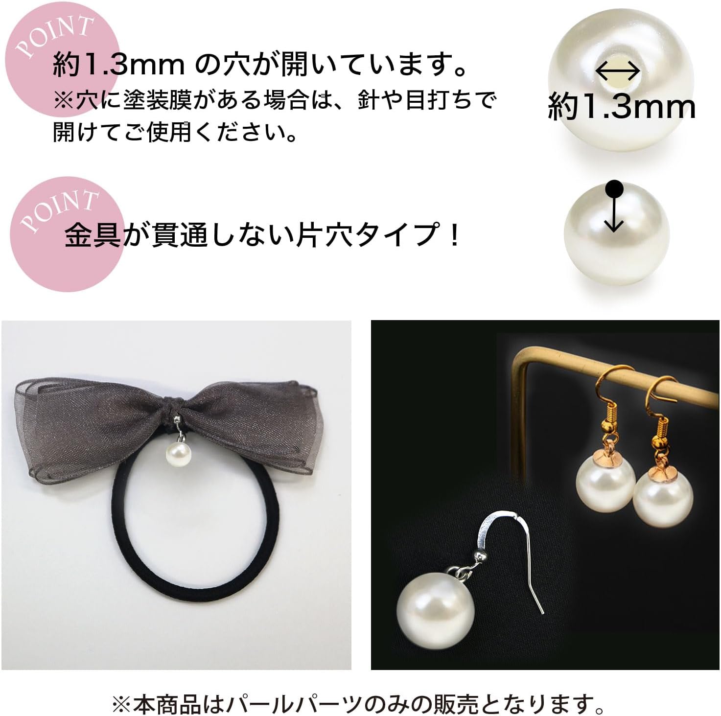 【特徴】片側だけに穴が開いたパールパーツです。ピンや金具を差し込みやすく、ピアスやイヤリング、ネックレスのワンポイントにおすすめです。