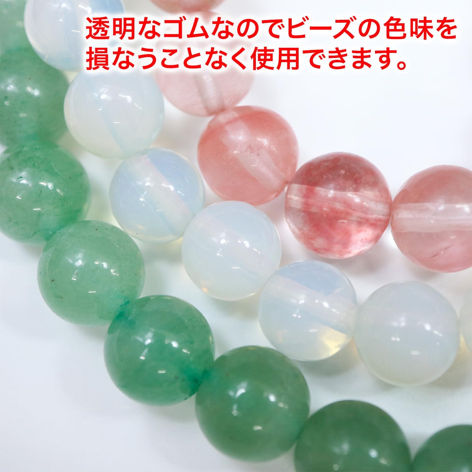 【特 徴】ブレスレットやストラップなどの手芸で使用するシリコンゴムです。ゴム自体が透明でジュエリーやビーズの色合いの邪魔をしません。伸縮性や弾力性があり使い勝手の良いゴムです。