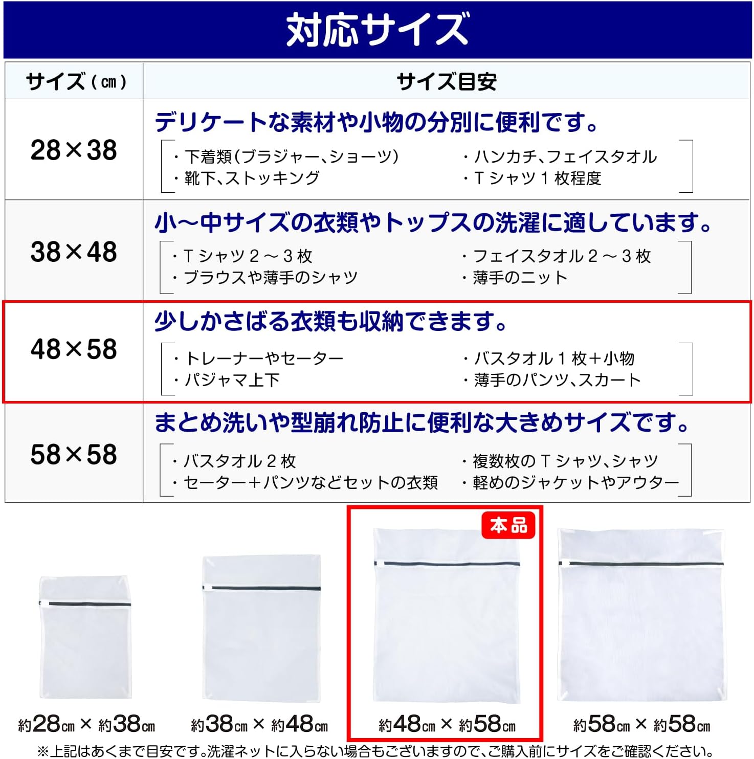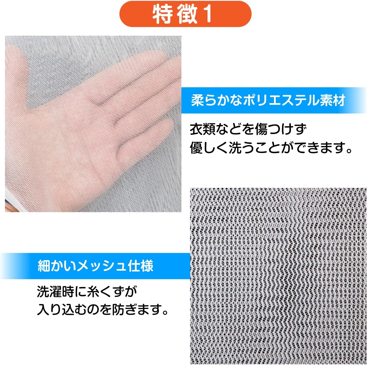 【特徴】洗濯物の絡まりや衣類への糸くずの付着を防ぐ、非常に使い勝手の良い洗濯ネットです。