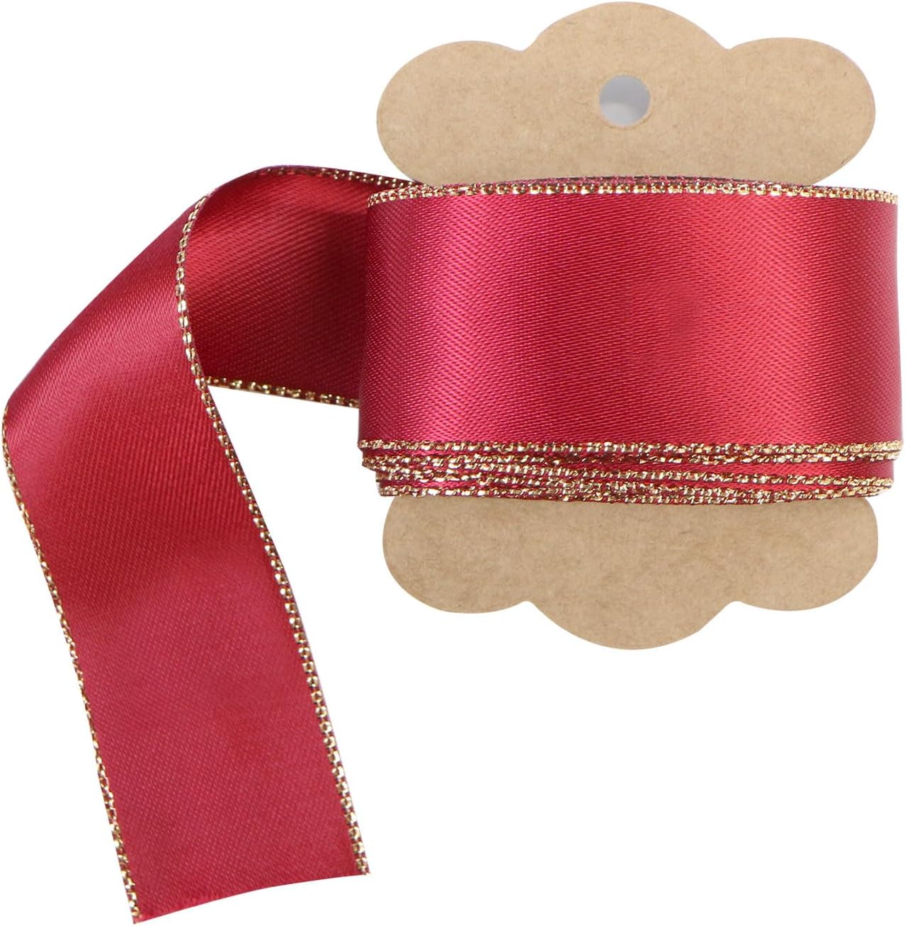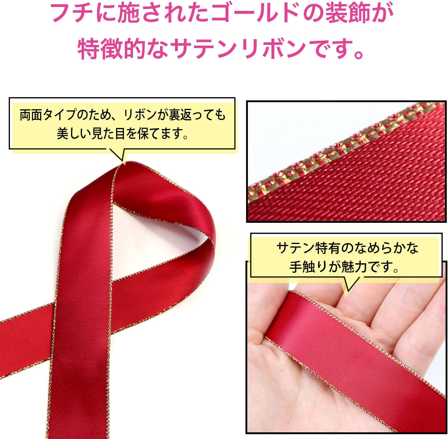 サテンリボン 【レッド】 赤 金 両面 幅25mmx3m エッジ装飾 ゴールド フチ テープ ギフト ラッピング 手芸 包装 ポリエステル きらきらぷんぷん丸 SRBN-027