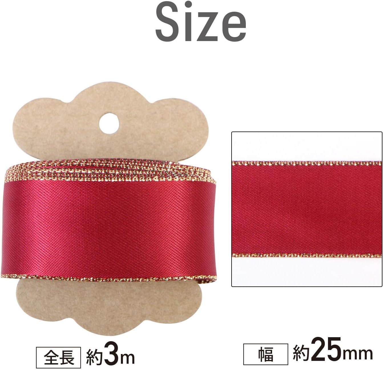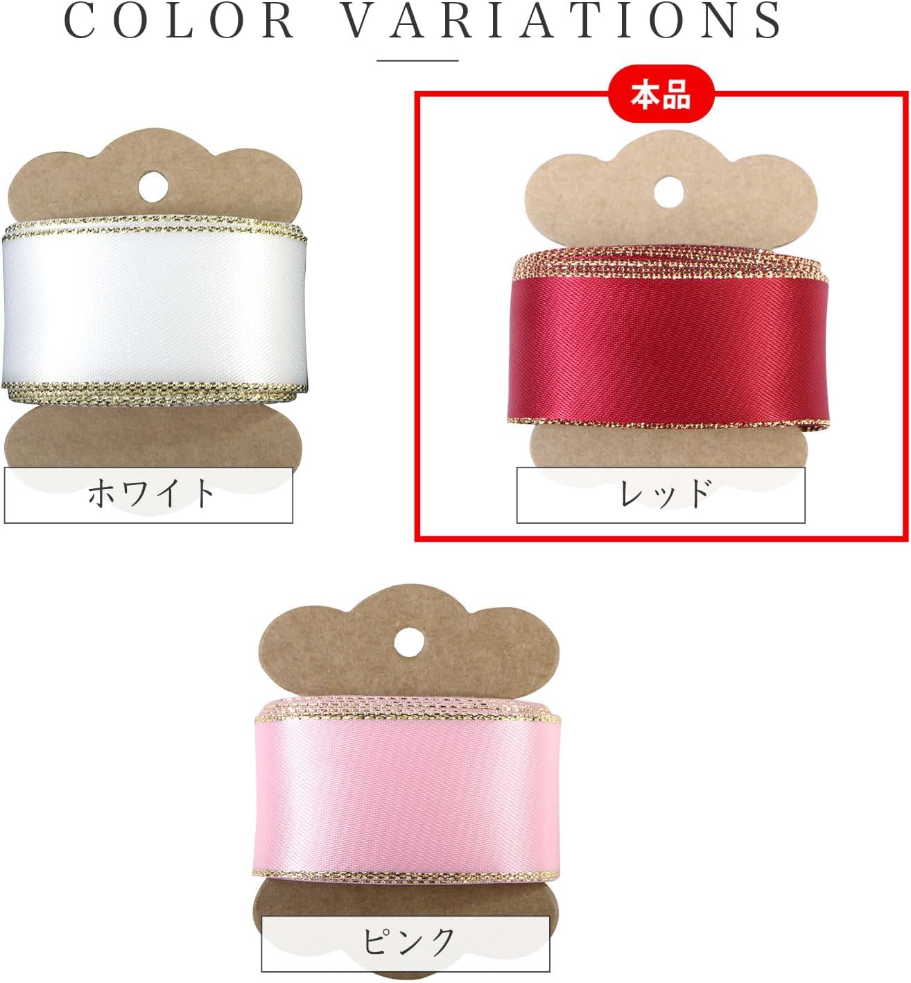 【リボンカラー】レッド 【エッジカラー】ゴールド 【リボン幅】25mm 【全長】約3m